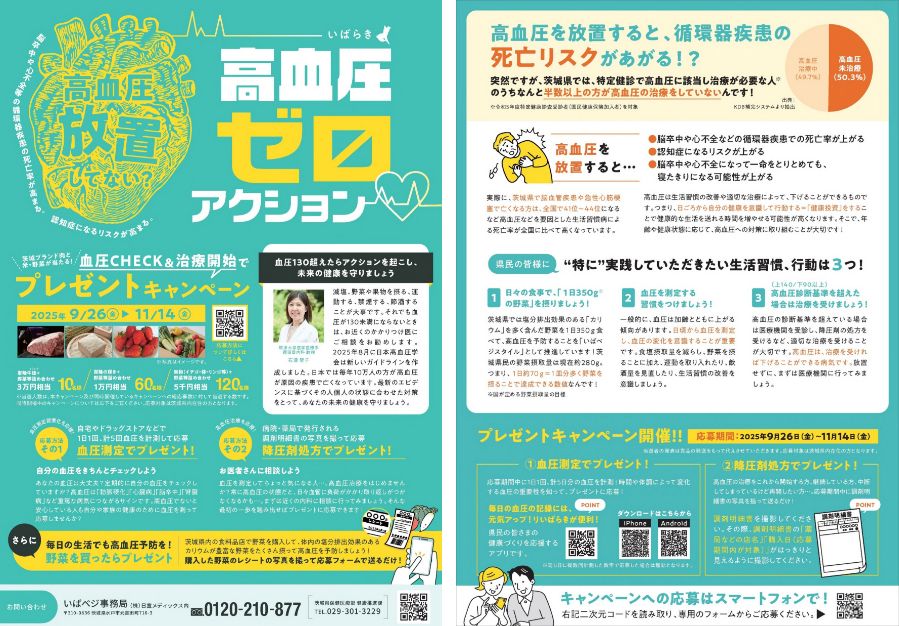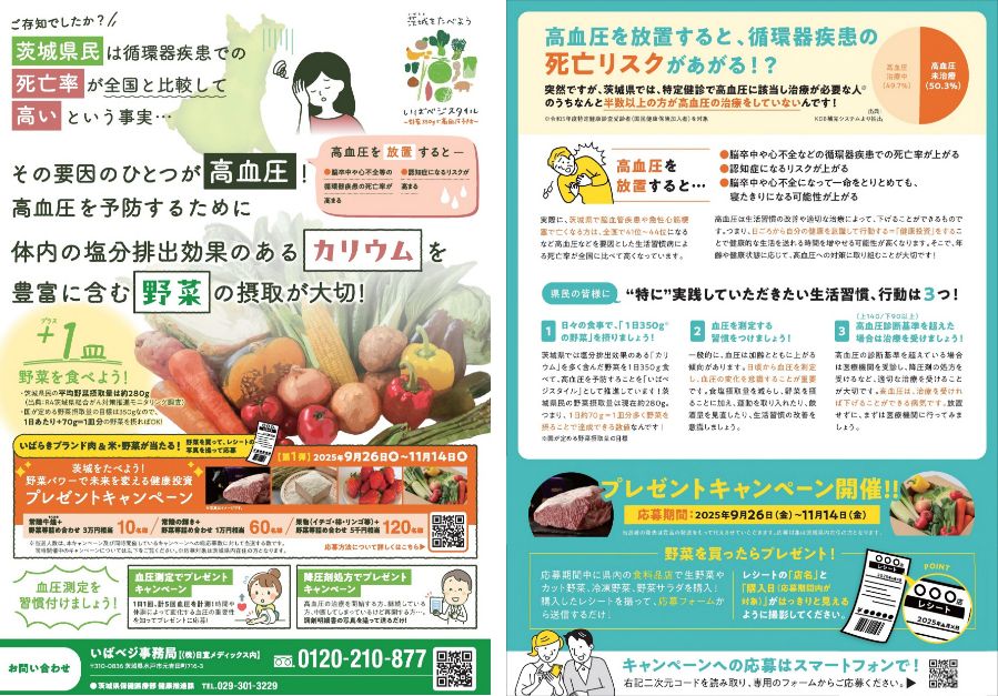 そこで、茨城県では、塩分排出効果のある「カリウム」を多く含んだ野菜を1日350g食べて、高血圧を予防することを、「いばベジスタイル」として推進しています!
