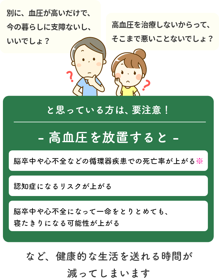 高血圧は、生活習慣の改善や、適切な治療によって、下げることができるものです。