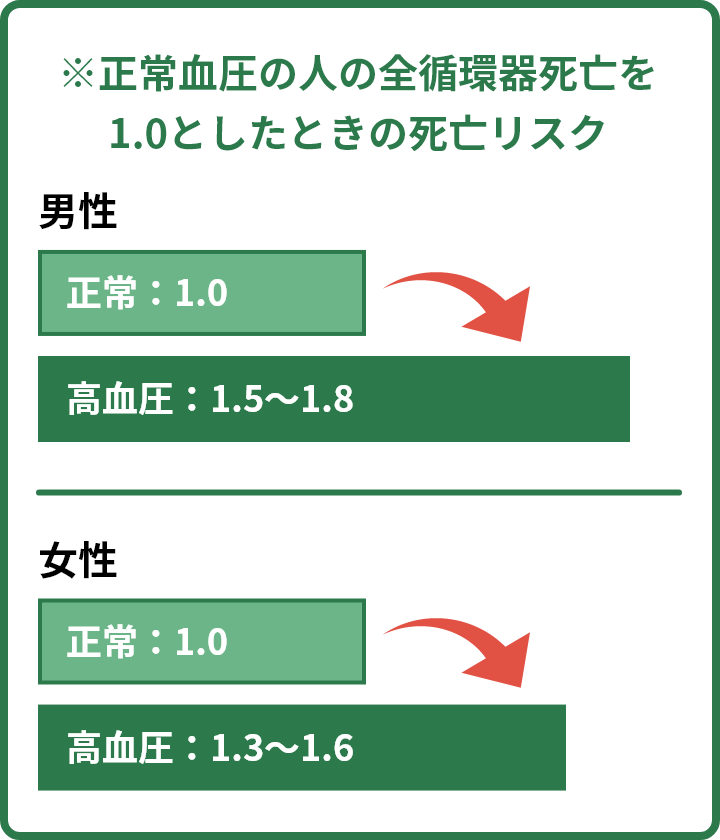 また、高血圧と診断される「収縮期血圧140mmHg以上、または拡張期血圧90mmHg以上」になった場合は、医療機関で適切な治療を受けましょう。